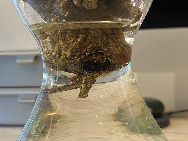 根元の空洞が致命傷で水分欠乏によるシワが見られます↓
