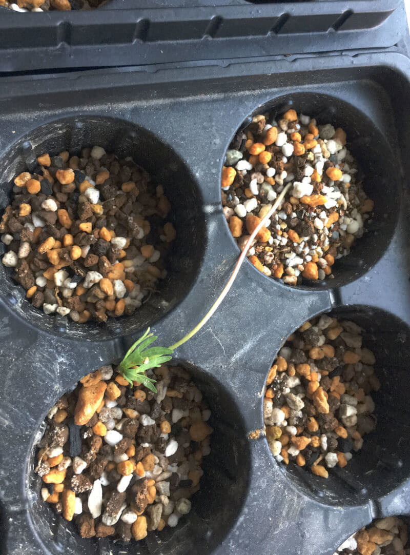 ブルセラ・ファガロイデス種子を蒔いてから20日が経過しました。CODEXGREEN -コーデックス/塊根植物、多肉植物の育成日記【10日目】ブルセラ・ファガロイデス種子から育成チャレンジブルセラ・ファガロイデスの種子を蒔いてから10日が経過しました。目次1 11〜15日目2 16〜20日目3 反省と学び4 まとめ4.1 Related Posts11〜15日目相変わらず徒長気味ですが、まぁ最初はこんなもんかなと、楽観的に考えていましたところ、徐々に傾いてきてるのを感じつつ、その翌朝。!!完全に倒れている。コレはピンチ!急ぎ掘り出す(◎o◎)! 結果 ⇣どうやら幹の細くなっている箇所(折れ?)が原因で水分が行き渡らなかったようです。徒長したせいで幹に負担が掛かったのか、、、応急処置で、幹の途中からカットし、メネデール希釈水に浸す。なんとか持ちこたえてくれ。。メネデール 500ml1,110円(11/16 22:48時点)Amazon楽天市場YahooAmazonの情報を掲載しています16〜20日目3〜4日後、徐々に葉枯れが進む。そしてついに、、、健闘も虚しくご臨終となりました。合掌。そしてありがとう(ToT)。反省と学び①種蒔の時期が悪かった(初秋) → 暖かい季節(春先〜夏)、又は温室環境の中で②用土が荒かった(小粒〜中粒の多肉植物専用土) → 挿し芽用土(微粒)を使う③外殻が付いたまま種蒔 → ふやかしてから外殻を取り除いて植える④射光が少なかった → 太陽光又は植物育成LEDライトをしっかり当てるまとめ早くも「ブルセラ・ファガロイデス種子から育成チャレンジ」の連載が終わりを迎えました。 つらい。。。厳しかったなぁ・・・・・・しかし。このままでは終わりません、いや終われません。実は既に、次の種子は到着済みです。先程到着したばかりのブルセラ・ファガロイデスの種子⇣最悪の事態を想定し、早めに注文していました。時期的なリスクも高まっていますが、次こそは万全の態勢で臨むのみ!「続・ブルセラ・ファガロイデス種子から育成チャレンジ」乞うご期待! ↓こちらからCODEXGREEN -コーデックス/塊根植物、多肉植物の育成日記【悲報】続・ブルセラ・ファガロイデス種子から育成チャレンジ前回、ブルセラ・ファガロイデスの種子を蒔いたものの早々に全滅。再度、ブルセラの種子を購入し実生からの育成にチャレンジします。ブルセラ・ファガロイデス 種子10粒Amazon楽天市場YahooAmazonの情報を掲載していますDAIM 種まきハウス 9穴トレー2個付き 多肉植物 育苗ポット 種まきポット 苗ポット 種まき 育苗 ポット 家庭…507円(11/17 08:39時点)Amazon楽天市場YahooAmazonの情報を掲載していますRelated Posts【悲報】続・ブルセラ・ファガロイデス種子から育成チャレンジ前回、ブルセラ・ファガロイデスの種子を蒔いたものの早々に全滅…【10日目】ブルセラ・ファガロイデス種子から育成チャレンジブルセラ・ファガロイデスの種子を蒔いてから10日が経過しまし…【プロローグ】ブルセラ・ファガロイデスの種子を植える灌木系の塊根植物「ブルセラ・ファガロイデス」の種子を購入し、… 記事が良かったら ↓ ポチッと