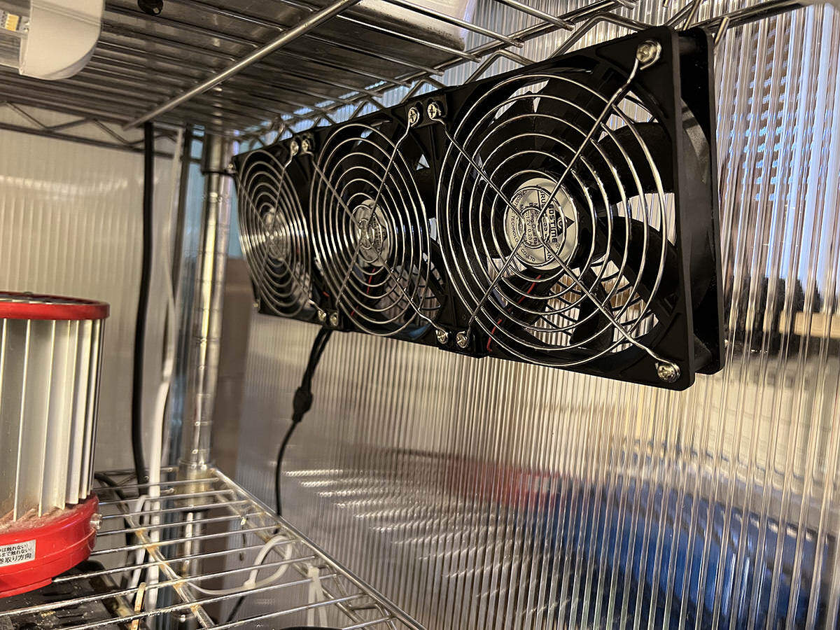 室内温室の撹拌扇として購入した「3連式の冷却ファン(PCファン)」の商品レビュー。主な特徴や使用感、ノイズ検証動画など。