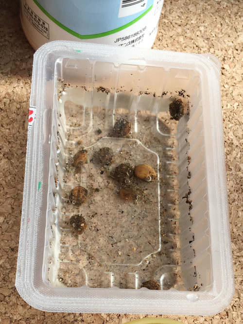 目次1 種子の特徴2 種子を活性化3 播種3.1 室内温室環境まとめ4 〜10日目5 今回の反省点5.1 その1「用土の温度が低かった」5.2 その2「光が全然足らなかった」6 まとめ6.1 Related Postsさて季節は秋から冬に差し掛かろうとしています。先日簡易的ではありますが室内温室をこしらえました。CODEXGREEN -コーデックス/塊根植物、多肉植物の育成日記【室内温室DIY ver.1】簡易室内温室をつくるの巻室内温室づくりに最低限必要なアイテムを揃え、商品レビューを交えながら温室制作を振り返ります。温室環境下での種子の発芽率を検証するため、季節外れではありますが播種を試みます。今回対象の種子は、「コミフォラ・カンペストリス」(commiphora campestris v campestris) こんな植物↓ 如何せん情報が少ないので、もはやジャケ買い感覚wアフリカ、アラビア、パキスタン、インド、マダガスカル地方に自生しているそうです。種子の特徴オンラインにて購入。5粒で1000円〜1300円。種子は大きめで硬い。【種子】Commiphora campestris var. Campestris ★コミフォラ(コンミフォラ)・カンペストリス◎香木としても…2,980円(11/17 12:09時点)Amazon楽天市場YahooAmazonの情報を掲載していますAmazonを介した直輸入なので1粒で1100円!高っ!(ちなみにこちら↑では購入していません、あしからず)種子を活性化まずメネデール希釈水に浸す。ここはいつもの流れ。メネデール 500ml1,110円(11/16 22:48時点)Amazon楽天市場YahooAmazonの情報を掲載しています殻が硬そうなのでまる2日間浸しました。その後種子の表皮を剥がそうとするも、とても硬くて断念^^;播種用土は、多肉専用土。マグアンプを少々混ぜ込む。プロトリーフ サボテン・多肉植物の土 5L675円(11/17 04:52時点)Amazon楽天市場YahooAmazonの情報を掲載していますハイポネックス マグァンプK 中粒 600g2,380円(11/17 05:23時点)Amazon楽天市場YahooAmazonの情報を掲載しています種まきトレーに、土に還るポットを投入。このポットは、種まきトレー穴にスッポリハマるんです。DAIM 種まきハウス 9穴トレー 2個付507円(11/17 08:39時点)Amazon楽天市場YahooAmazonの情報を掲載していますサカタのタネ 鉢 ジフィーポット 丸型5.5cm 40入659円(11/17 04:52時点)Amazon楽天市場YahooAmazonの情報を掲載しています少しだけ種を埋め込んで完成。室内温室環境まとめ室温28〜32度湿度60〜70%パネルヒーター をほぼ一日中ON。種まきトレー内は腰水にして、底面からは足元ヒーターで温める。トレー蓋には結露がびっしり。上部からは植物育成LEDを照射。約30cmくらい離れた距離から。LED PlantLight 18W クリップタイプ 植物育成使用 白色電球 E26 観葉植物 水耕栽培 水草栽培 …Amazon楽天市場YahooAmazonの情報を掲載していますファンは2台回しています。CODEXGREEN -コーデックス/塊根植物、多肉植物の育成日記室内温室の静音ファン!スピード調整も可能な「AC Infinity/MULTIFAN」レビュー室内温室用の静音ファンとして購入しました。開封から動作音までレビューします。AC Infinity MULTIFAN S4 静音 140mm USB 冷却ファン 受信機 DVR プレイステーション Xbox パソコン キャビ…4,310円(11/16 17:06時点)Amazon楽天市場YahooAmazonの情報を掲載しています〜10日目さて播種後、10日間が経過しました。 まったく動きなし!!www時期的な影響とはいえ、厳しいーー涙ブルセラ、ボスウェリア、コミフォラ、こやつらかなりデリケートだぞ。全滅を覚悟し、ベランダで土を片付けようと掘り出していた最中のこと。おや!?発芽しているじゃないか!\(^o^)/土に埋もれていてわからなかった。種子もデカけりゃ、芽もデカイ。とりあえず一つだけでしたが、これ、もしかすると、ほかの種子も可能性あるかも。再度、オキシベロン溶液で活性化をはかることにしました。バイエルクロップサイエンス 殺菌剤 オキシベロン液剤 500ml3,170円(11/16 17:25時点)Amazon楽天市場YahooAmazonの情報を掲載しています今回の反省点その1「用土の温度が低かった」腰水の影響で土の温度が上がらなかったと推測。せいぜい22〜25度くらいか。海外のサイトで育成方法を確認した限りでは、鉢内の温度は25〜27度はキープしたほうがいいとのこと。その2「光が全然足らなかった」せめて15cmくらいの距離からLED照射すべきだった。そうすれば鉢内の温度もプラス2度くらいを見込めたはず。まとめひとつでも発芽して安心しました。引き続き、経過報告予定です。追伸、今年の播種はこれで最後にしよう、そう心に決めました。(ムズイ)【種子】コミフォラ・アフリカーナ 5s Commiphora africana v glaucidula2,300円(11/16 17:26時点)Amazon楽天市場YahooAmazonの情報を掲載しています【種子】コミフォラ・モンストローサ(LA) マダガスカル産 5s Commiphora monstruosa1,938円(11/16 23:00時点)Amazon楽天市場YahooAmazonの情報を掲載していますCommiphora holtziana – Caudiciform – 1 seedsAmazonRelated Posts【21日目】コミフォラ・カンペストリス種子から育成チャレンジコミフォラ・カンペストリスの種子から育成を始めて21日目とな… 記事が良かったら ↓ ポチッと