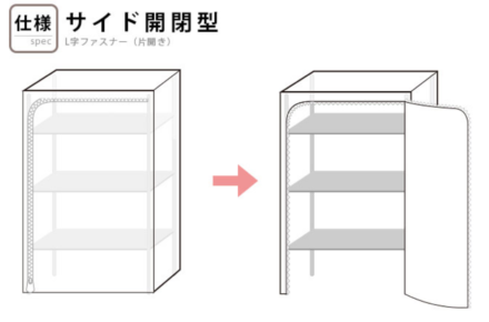 「正面式開閉(マジックテープあり)」又は「サイド式開閉」から選択可能。