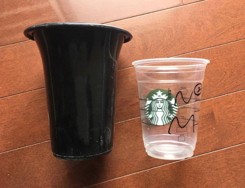 蘭鉢上部と透明カップ上部までの間は約2cmくらい。