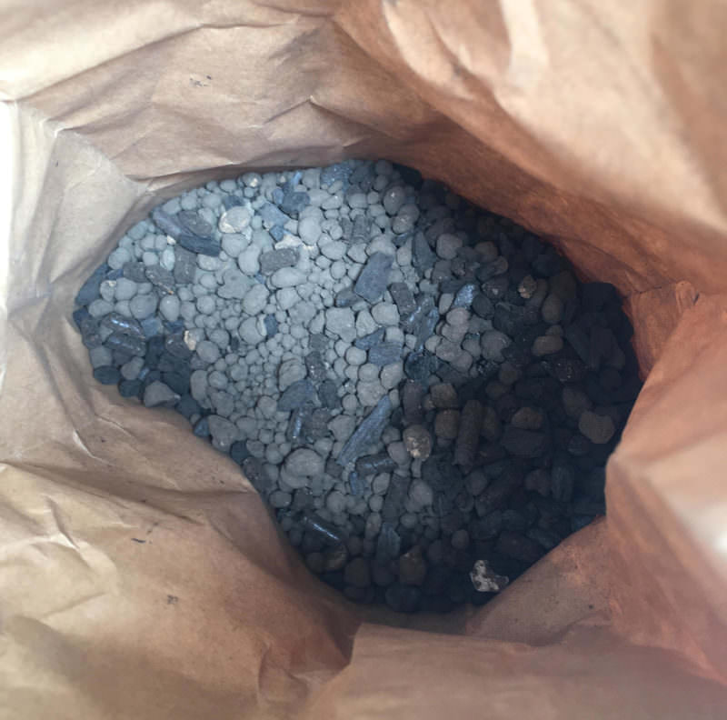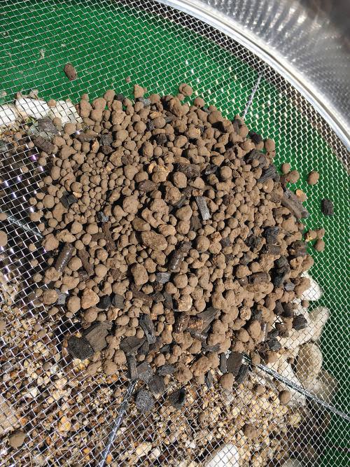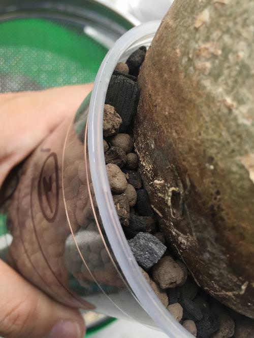5mm網のフルイにかけた金沢バイオの土を投入。