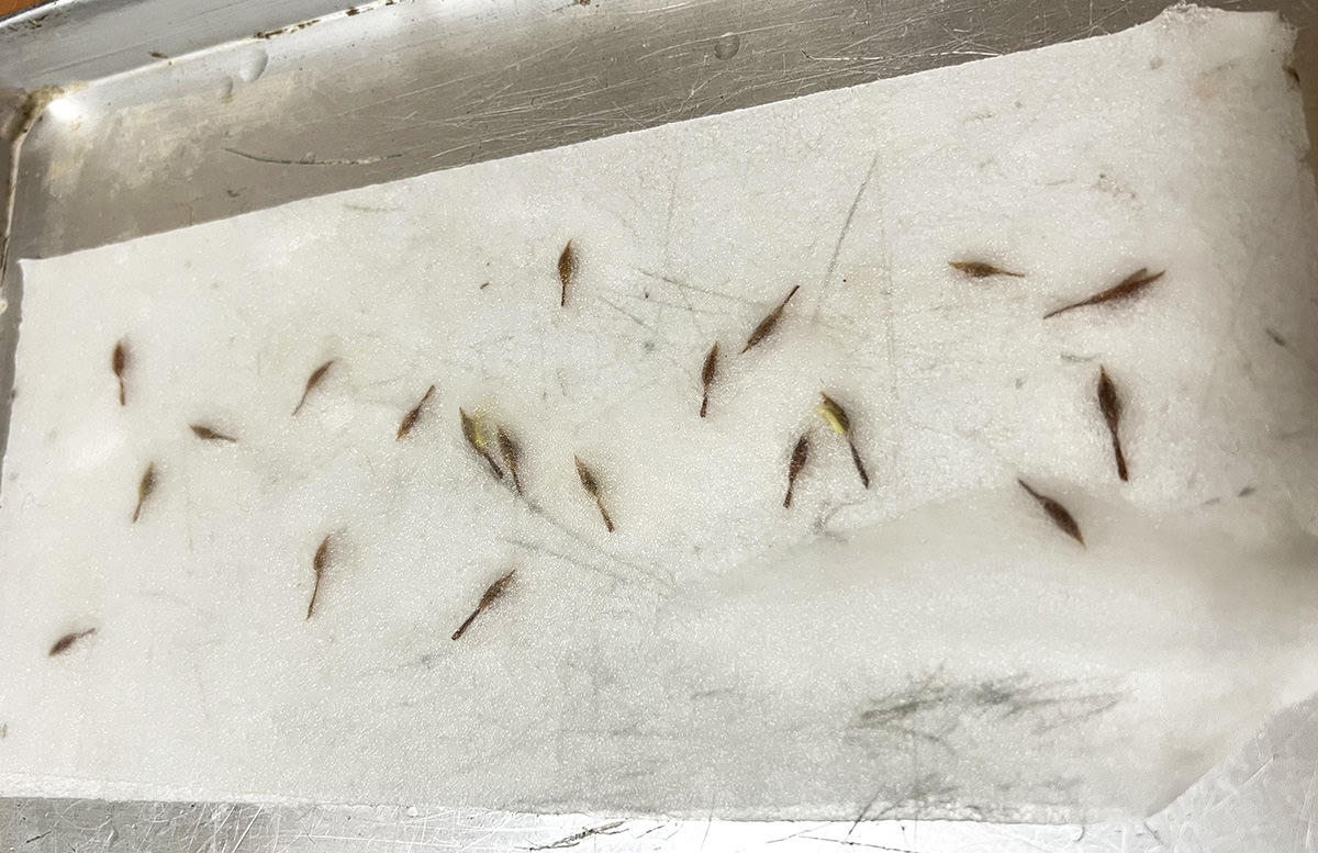 種子の数が多い場合は、写真のような面積の広い透明ケースに入れると、