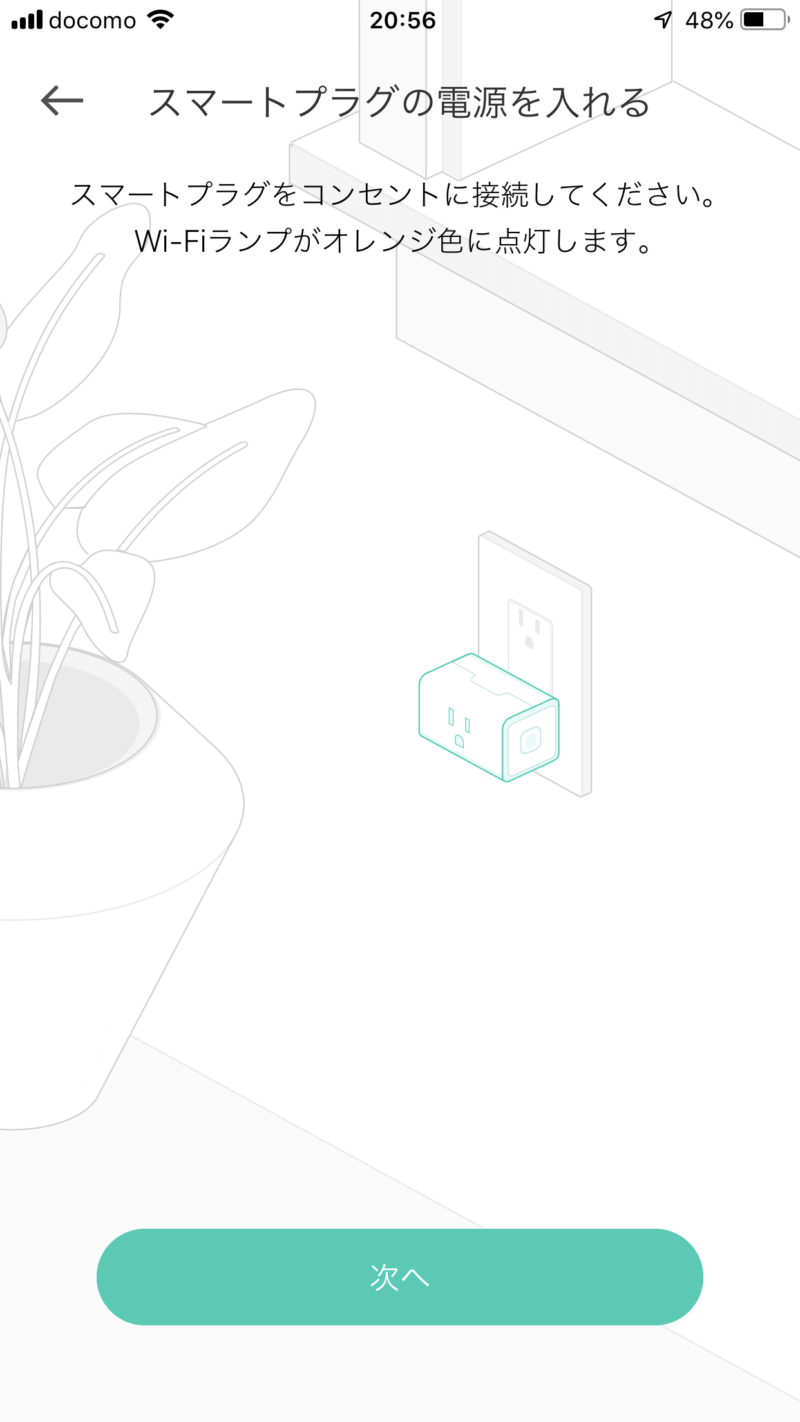 接続したスマートプラグの電源を入れる(側面のボタン)と、