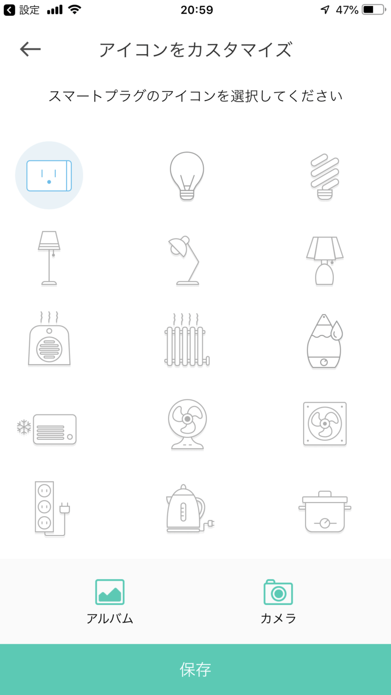 端末ごとのアイコン選択画面から「スマートプラグ」を選択。