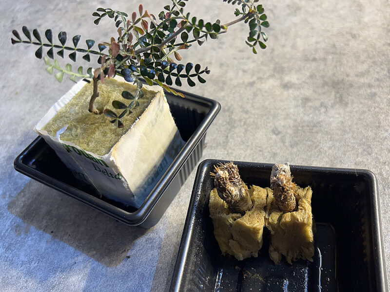 現在オトンナ・フルカタ、ユーフォルビア・ギラウミニアナもロックウール挿し木で挑戦中。