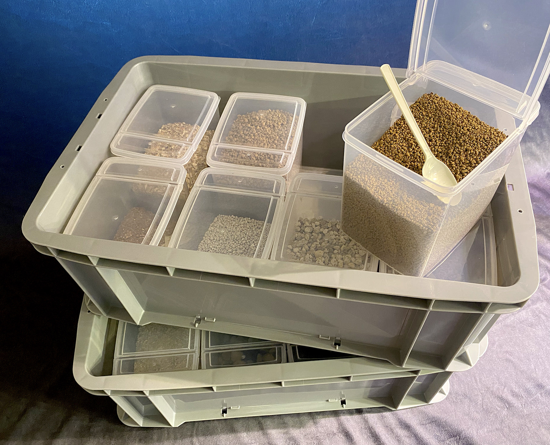 用土や肥料を小分けして収納整理してみました。収納グッズのレビューなど。
