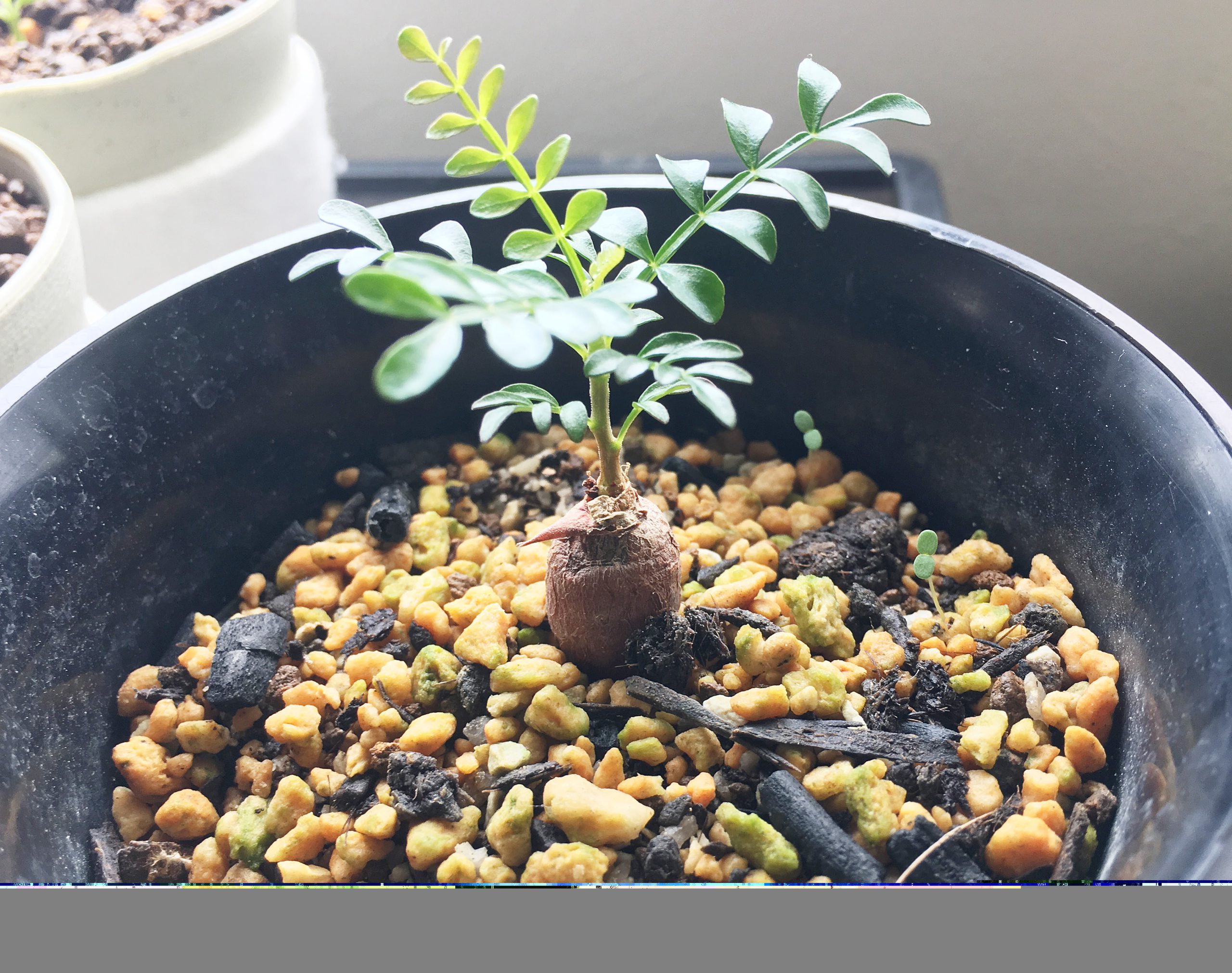 オペルクリカリア・パキプスの実生苗の育成を始めて1年が経過。鉢増しを機に、地中内部の成長具合を確認しました。