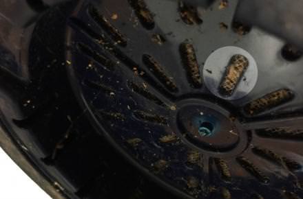 ◆育成一ヶ月目の鉢底(少しだけ根が出ている)