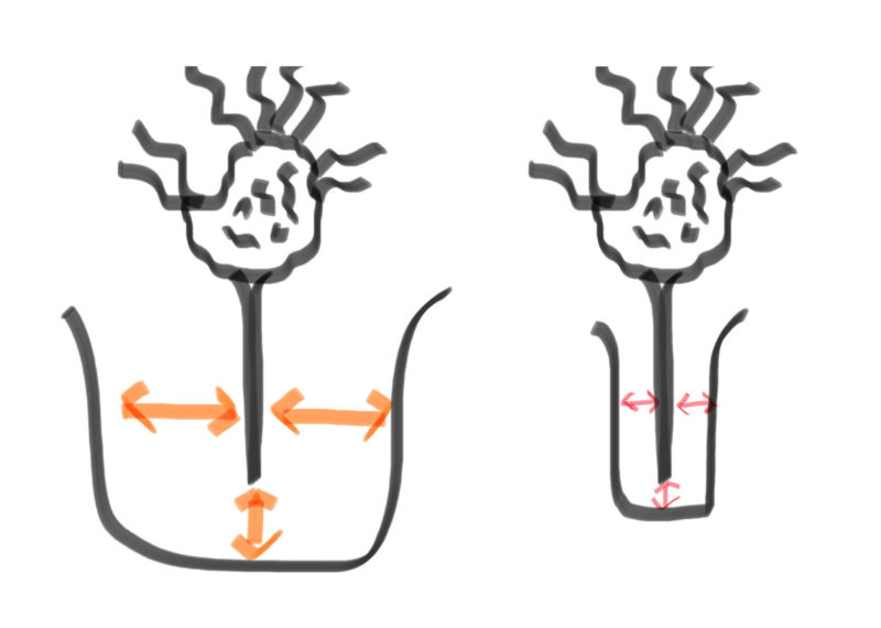 主根の長い ”灌木系のコーデックス”に適した、縦長の鉢をご紹介しています。