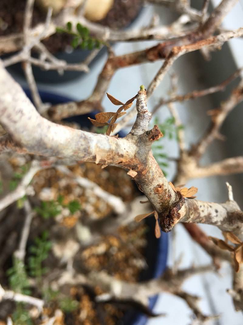 元々緑の葉が残っていた元気な枝(比べた場合の話)から