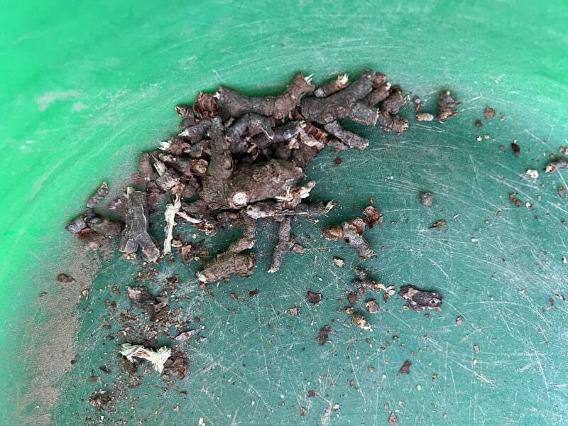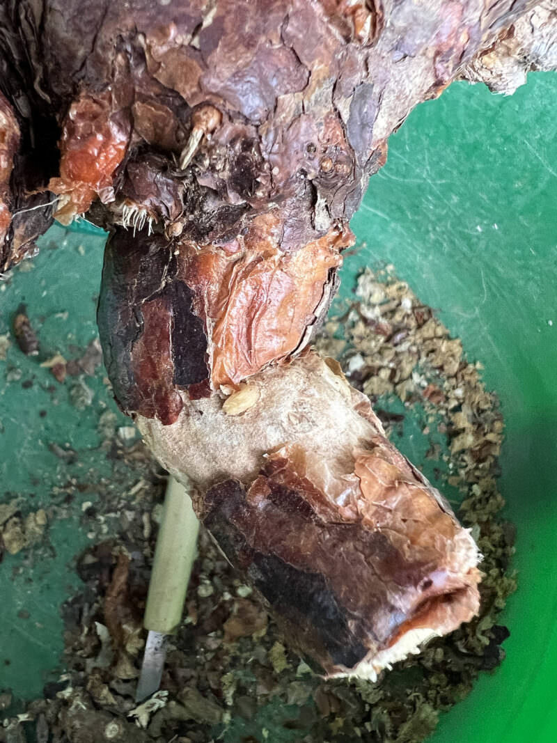 根の断面に粉状の発根促進剤ルートンを塗って🎨、