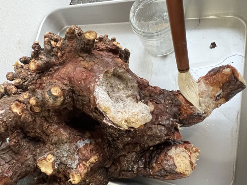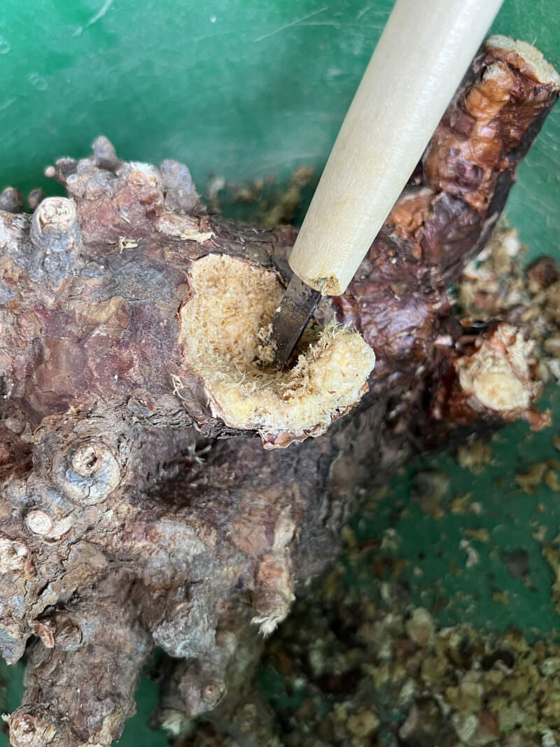 正直、腐った部分を完全に除去できた自信がありませんので、乾燥させて様子を見たほうが無難であると判断しました。