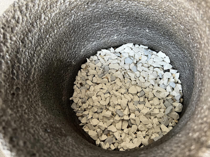 途中に中粒〜大粒の日向石を適量挟み込んで対処しました。